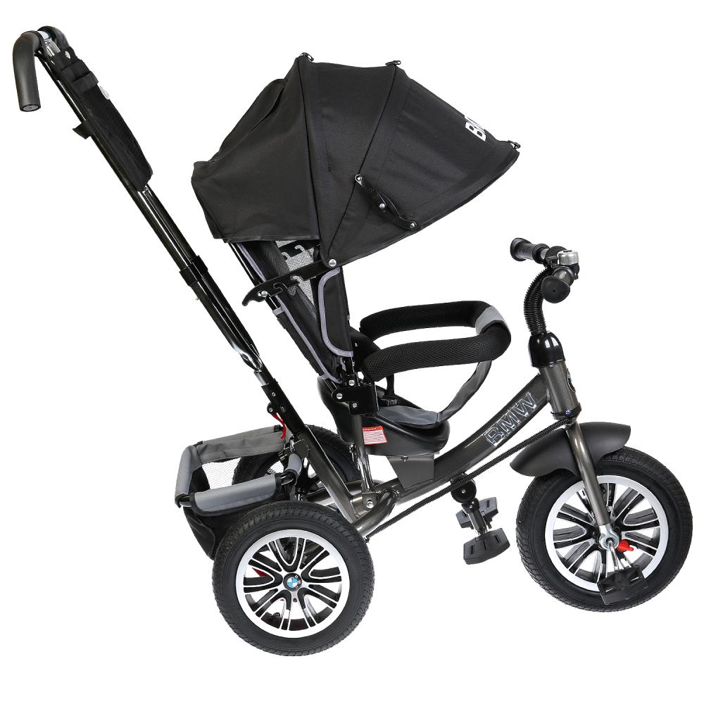 3 ბორბლიანი ველოსიპედი – BMW, ფერადი შავი გასაბერი ბორბლები 12 და 10 ინჩი, BMW, BMW-N1210-BLACK.