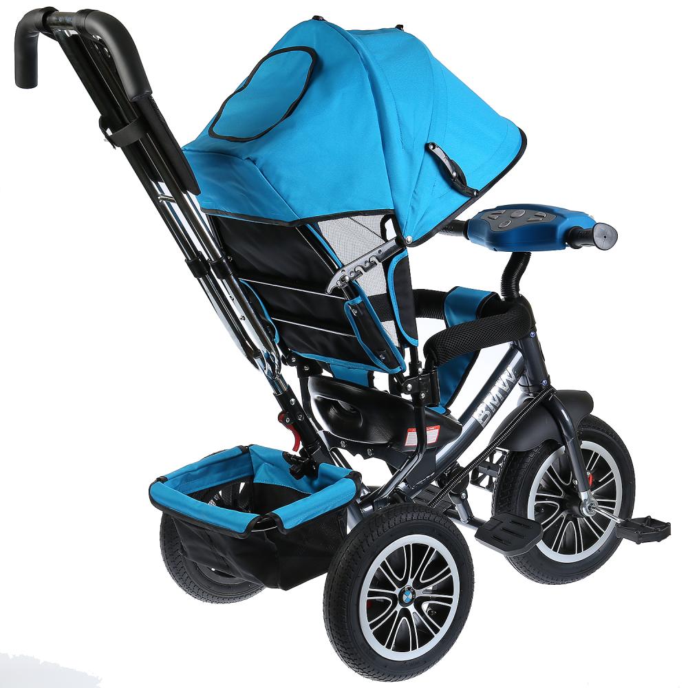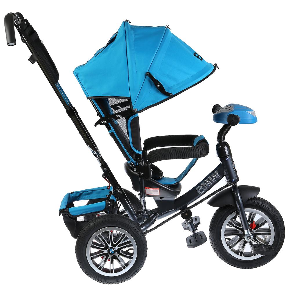 BMW 3 ბორბლიანი ველოსიპედი, გასაბერი ბორბლები 12 და 10,, მსუბუქი მუსიკალური პანელი, რეგულირებადი უკანა სავარძელი, უკანა მუხრუჭება, ლურჯი, BMW, BMW-M-N1210-LBLUE.
