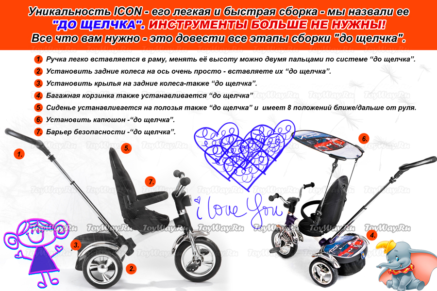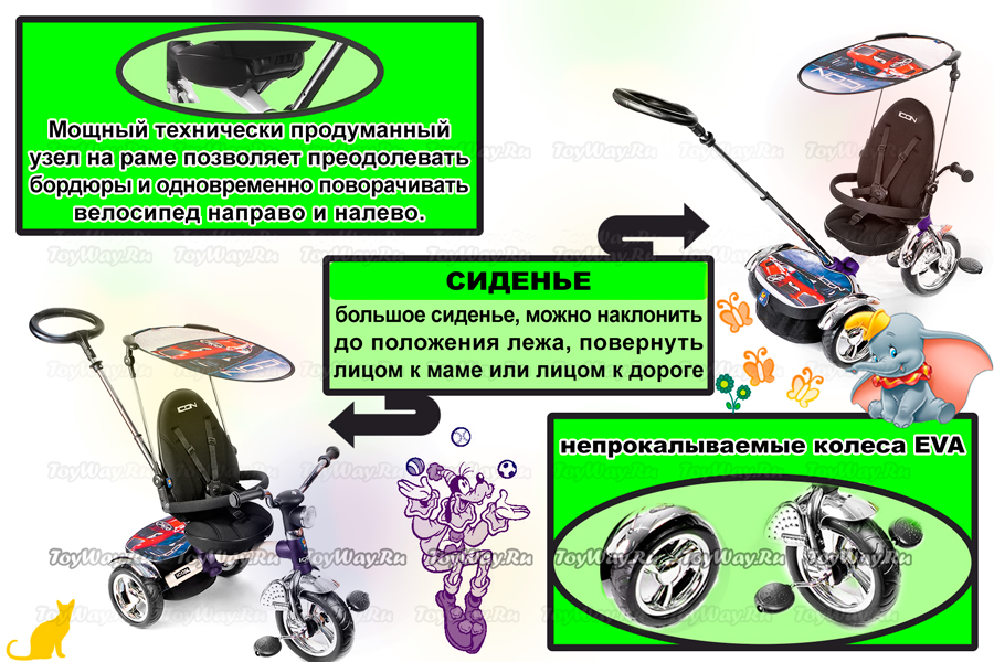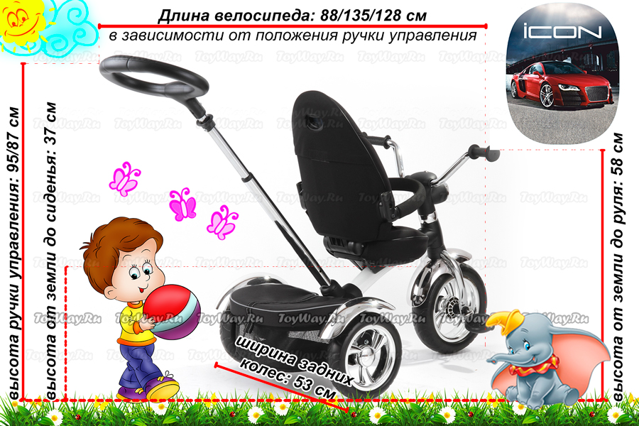 პატარა მხედრები და უბრალოდ უბრალო მოყვარულები შეიყვარებენ ICON 3 RT– ის ველოსიპედს. მოდელს აქვს გასაბერი ბორბლები და ძალიან კომფორტული სავარძელი, რომელსაც აქვს 8 პოზიცია (საჭესთან უფრო ახლოს ან მისგან). გარდა ამისა, თქვენ შეგიძლიათ შეცვალოთ ზურგის პოზიცია არა მხოლოდ “გასწორება”, არამედ “ცრუობს” პოზიციაზე. თქვენ ასევე შეგიძლიათ წაშალოთ სავარძელი და, განათავსოთ იგი 360 გრადუსზე, “სახე” დედისთვის. ძალიან გრძელი და კომფორტული მშობელი ტელესკოპის სახელურია განთავსებული იდეალურ კუთხესთან და ჯდება ნებისმიერი მოზრდილის სიმაღლეზე, რადგან მისი სიმაღლე მარტივად შეიძლება შეიცვალოს. ასევე, მშობლის სახელური საშუალებას გაძლევთ ადვილად აკონტროლოთ ველოსიპედი.