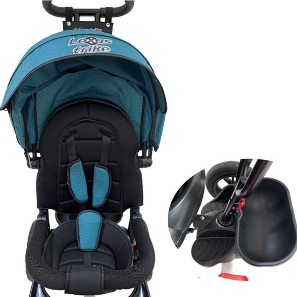 – Tricycle აქვს მიმზიდველი დიზაინი – რკინის ჩარჩო ლითონის ღერძი შიგნით ჩარჩო მოხატული ფერის აკვამარინი, ჰარმონიულად შერწყმული ტექსტილის ელემენტები იგივე ფერი სქემა «Lexus Trike» ლოგო და დეკორატიული პლასტიკური დისკები დისკები.