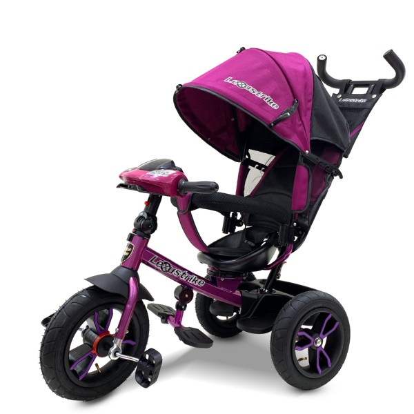 3 ბორბლიანი ველოსიპედი – Lexus- ის ველოსიპედი, ჟოლო, 12 და 10 ინჩიანი გასაბერი ბორბლები, მსუბუქი მუსიკალური პანელი, swivel სავარძელი, Lexus Trike, 970TSM2-N1210P-MALINA.