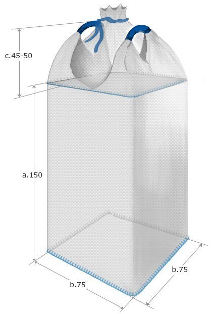 ბიგ-ბეგი 2-სლინგიანი 75х75х125 სმ, ზედა-შეკრება, ქვედა-დახურული, 25 ც