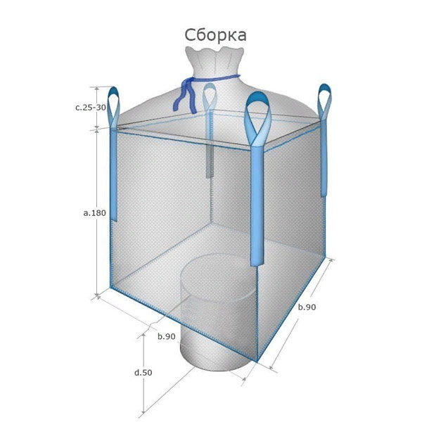 ბიგ-ბეგი 4-სლინგიანი 95х95х180 სმ, ზედა-შეკრება, ქვედა-დახურული, 25 ც