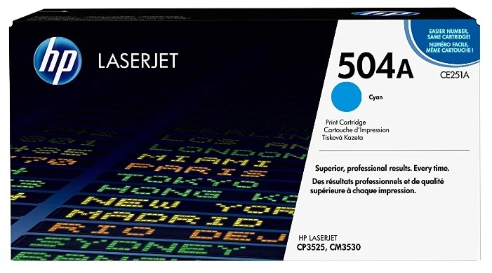 ლაზერული პრინტერის კარტრიჯი HP 504A (CE251A) Cyan რესურსი: 7000 გვერდი პრინტერი: HP LaserJet CP5225