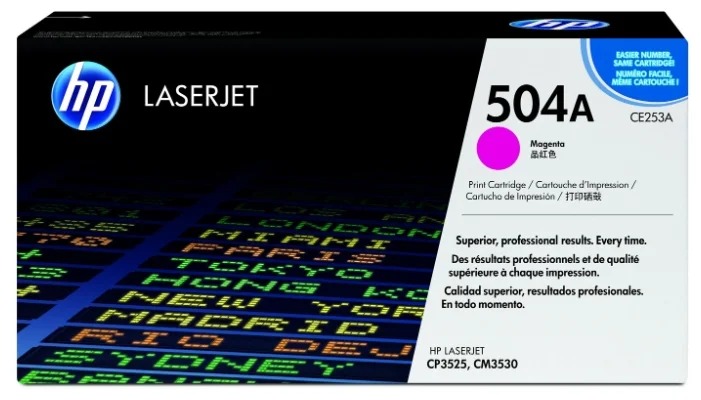 ლაზერული პრინტერის კარტრიჯი HP 504A (CE253A) Magenta რესურსი: 7000 გვერდი პრინტერი: HP LaserJet CP5225